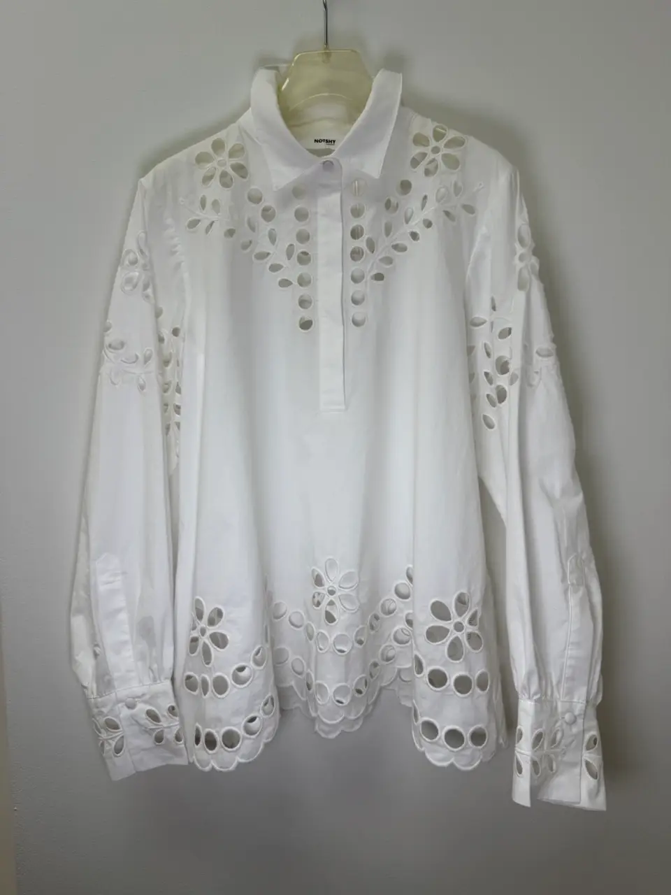 The Notshy white cashmere shirt is soft, lightweight, and effortlessly refined. A timeless staple made for layering or wearing on its own.