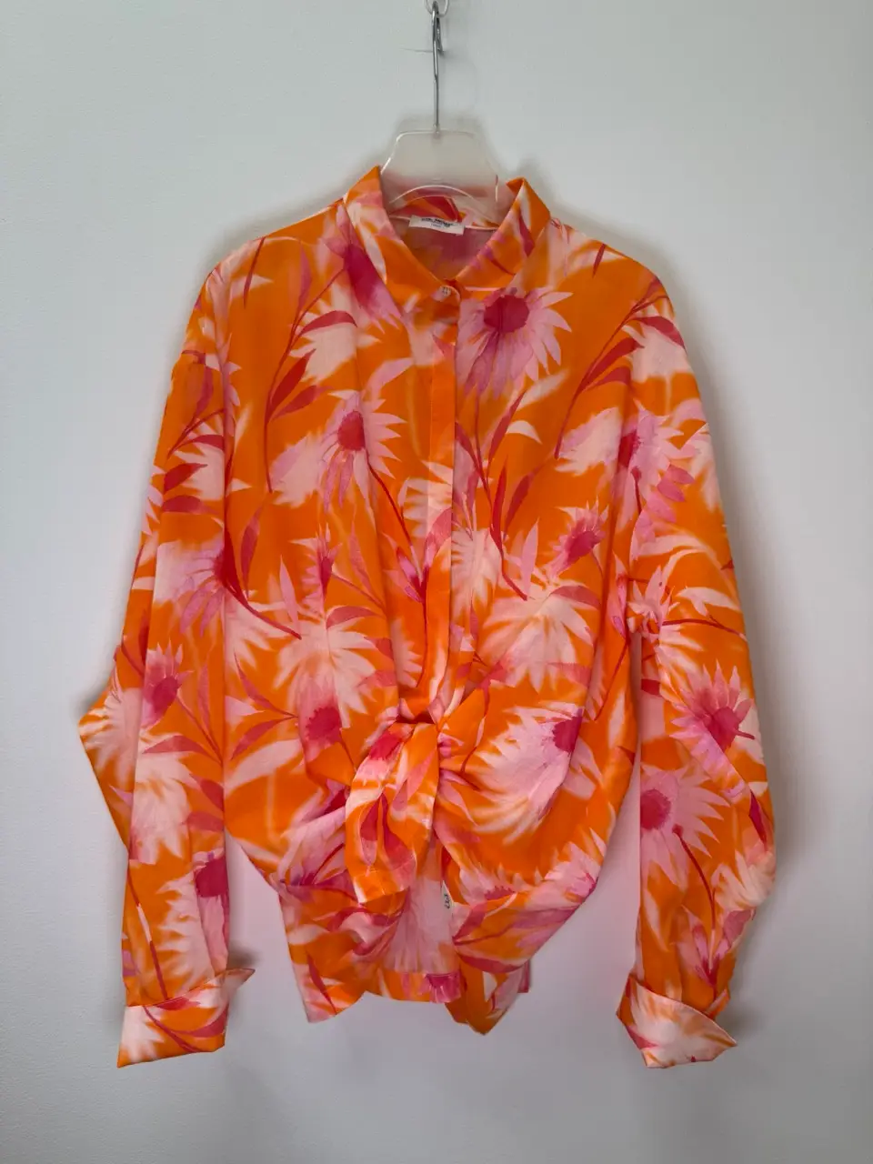 The JNBY grey shirt features abstract pink designs for a playful, artistic edge. A unique piece that adds character to any outfit.